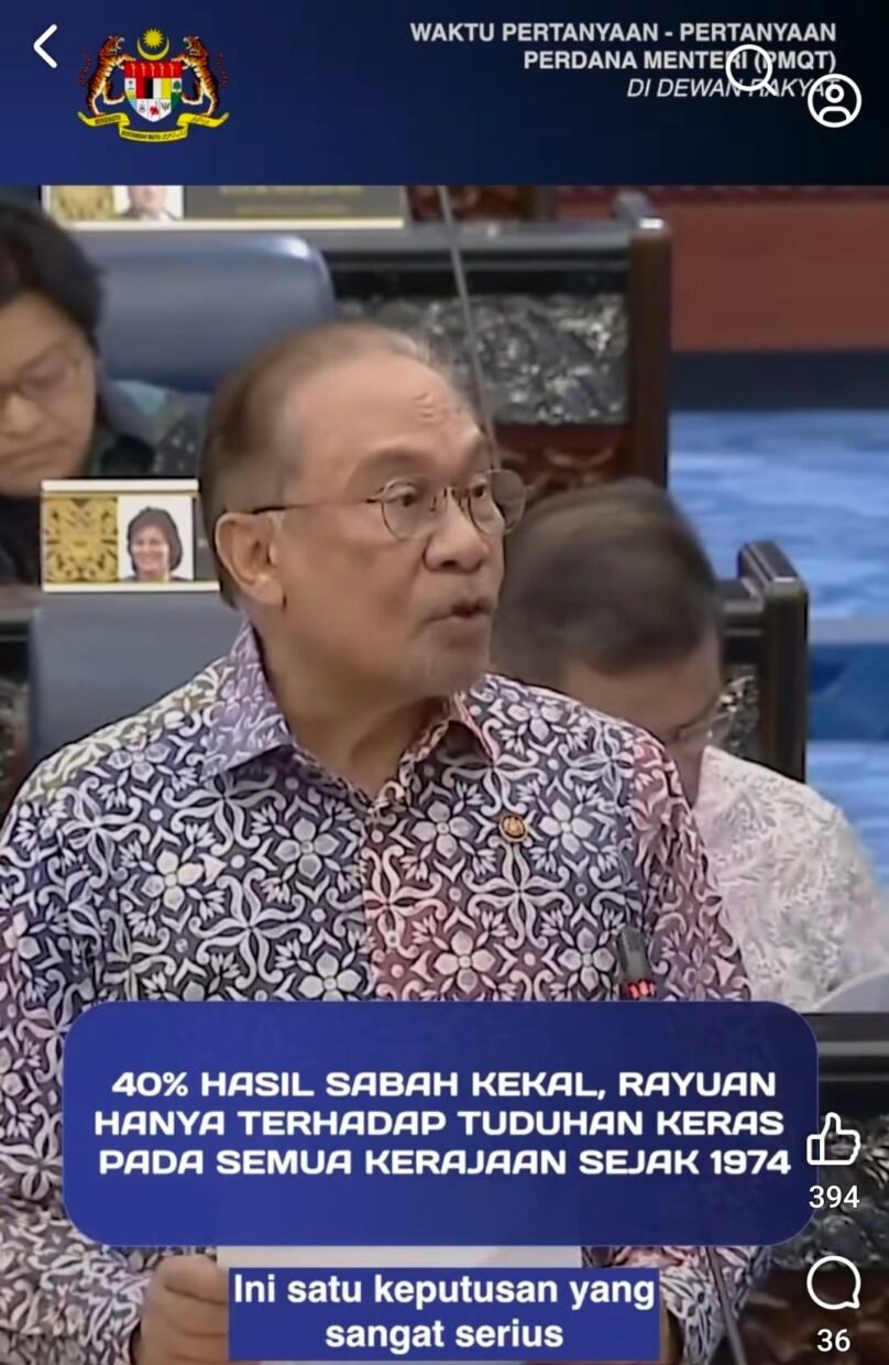 Dalam jawapan kepada soalan di Dewan Rakyat pagi ini, Anwar menyatakan bahawa keputusan ini dibuat selepas Mesyuarat Khas Jemaah Menteri pada 11 November lalu, di mana taklimat penuh daripada Peguam Negara dan Perbendaharaan Negara dipertimbangkan. Beliau menjelaskan bahawa rayuan yang dikemukakan Kerajaan Persekutuan hanya tertumpu kepada tuduhan berat dalam Alasan Penghakiman mahkamah, yang mendakwa semua kerajaan persekutuan sejak era Tun Abdul Razak hingga kini, serta kerajaan negeri Sabah sejak pentadbiran Tun Datu Mustapha hingga sekarang, telah melanggar kewajipan perlembagaan dan mengabaikan tanggungjawab kepada Sabah.