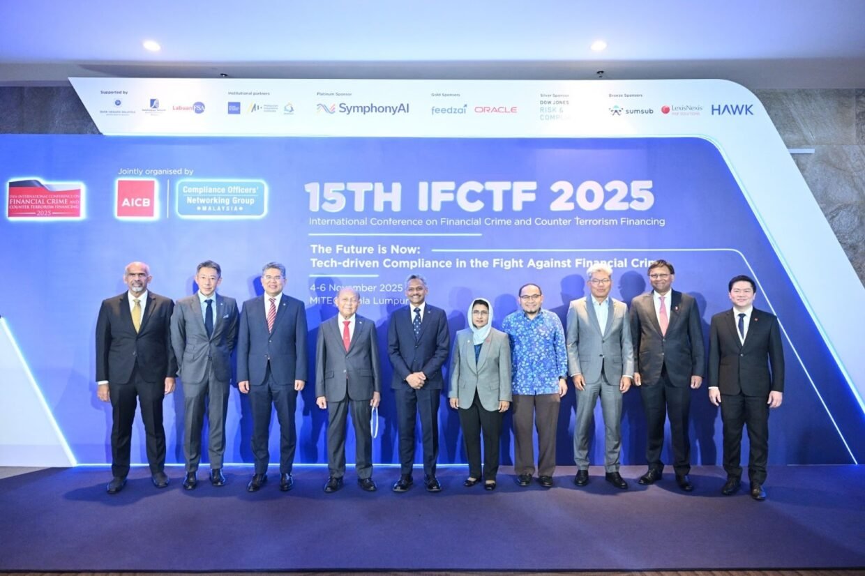 KUALA LUMPUR, 5 November 2025: Di tengah-tengah peningkatan kadar jenayah kewangan, Asian Institute of Chartered Bankers (AICB) dan Compliance Officers’ Networking Group (CONG), dengan sokongan Bank Negara Malaysia (BNM), Suruhanjaya Sekuriti Malaysia (SC), dan Lembaga Perkhidmatan Kewangan Labuan (Labuan FSA)  — telah menghimpunkan lebih 50 pakar antarabangsa dan serantau serta lebih 1,200 profesional perbankan semasa 15th International Conference on Financial Crime and Counter Terrorism Financing (IFCTF) 2025 yang berlangsung dari 4 hingga 6 November 2025 bertempat di Malaysia International Trade and Exhibition Centre (MITEC), Kuala Lumpur.