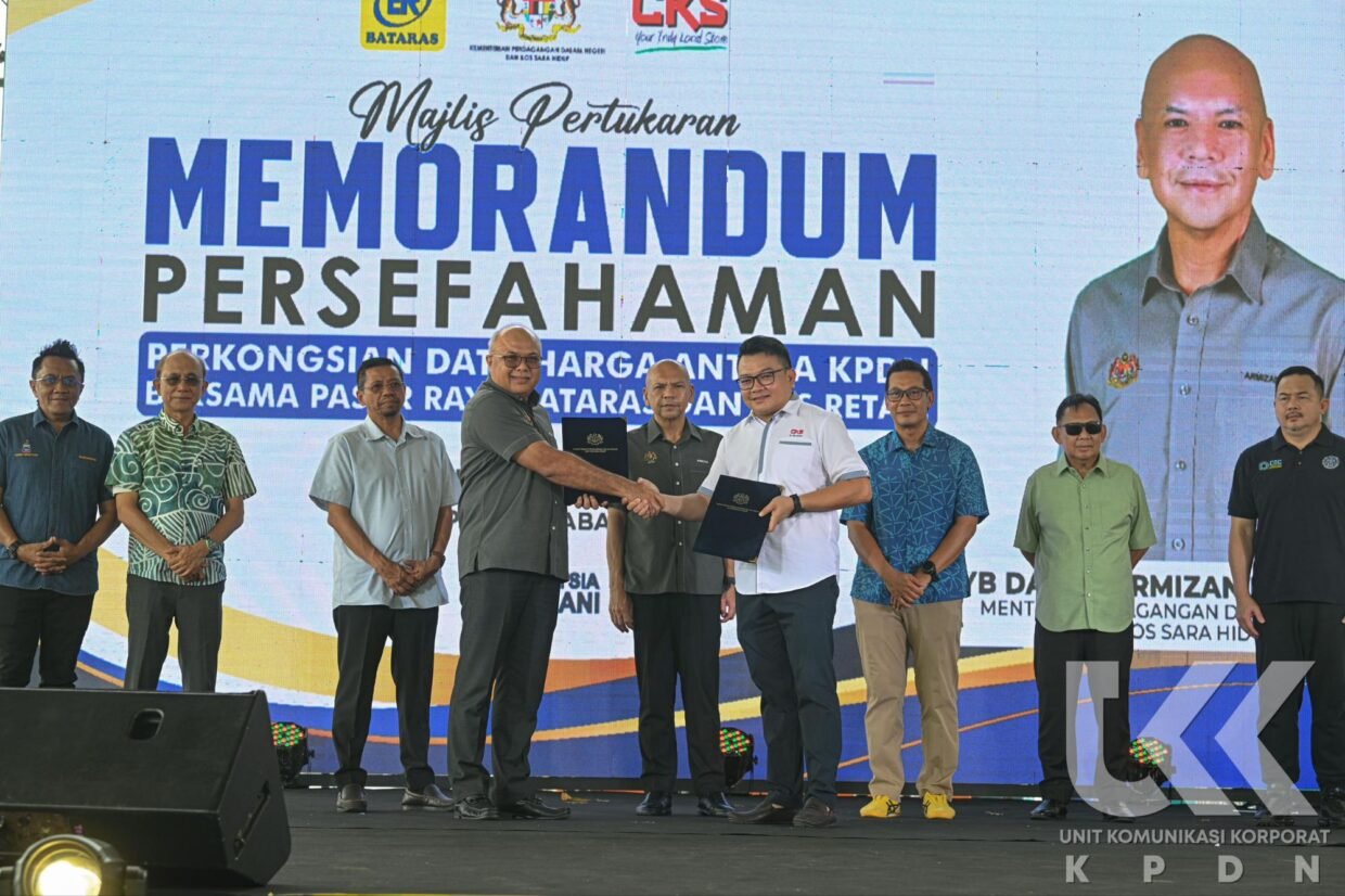 Papar, Sabah – 9 November 2025 – Kementerian Perdagangan Dalam Negeri dan Kos Sara Hidup (KPDN) hari ini memeterai Memorandum Persefahaman (MoU) dengan dua entiti sektor peruncitan di Sabah, iaitu Pasar Raya Bataras Sdn. Bhd. dan Pasar Raya CKS Retail Sdn. Bhd., bagi memperluaskan inisiatif digitalisasi dan ketelusan data harga barangan melalui Aplikasi PriceCatcher.